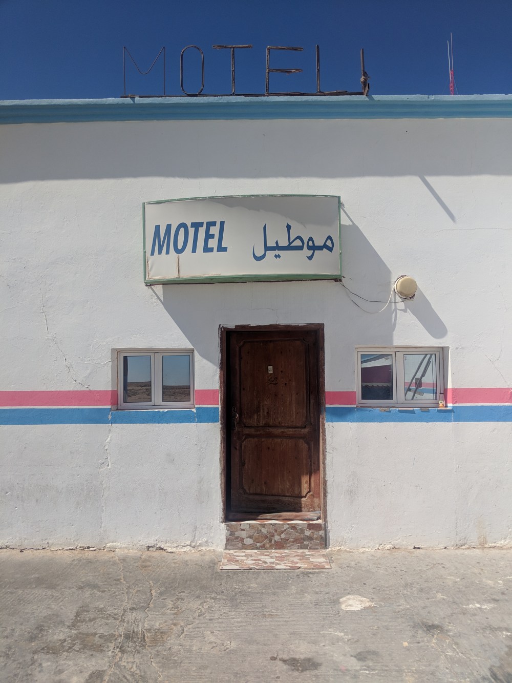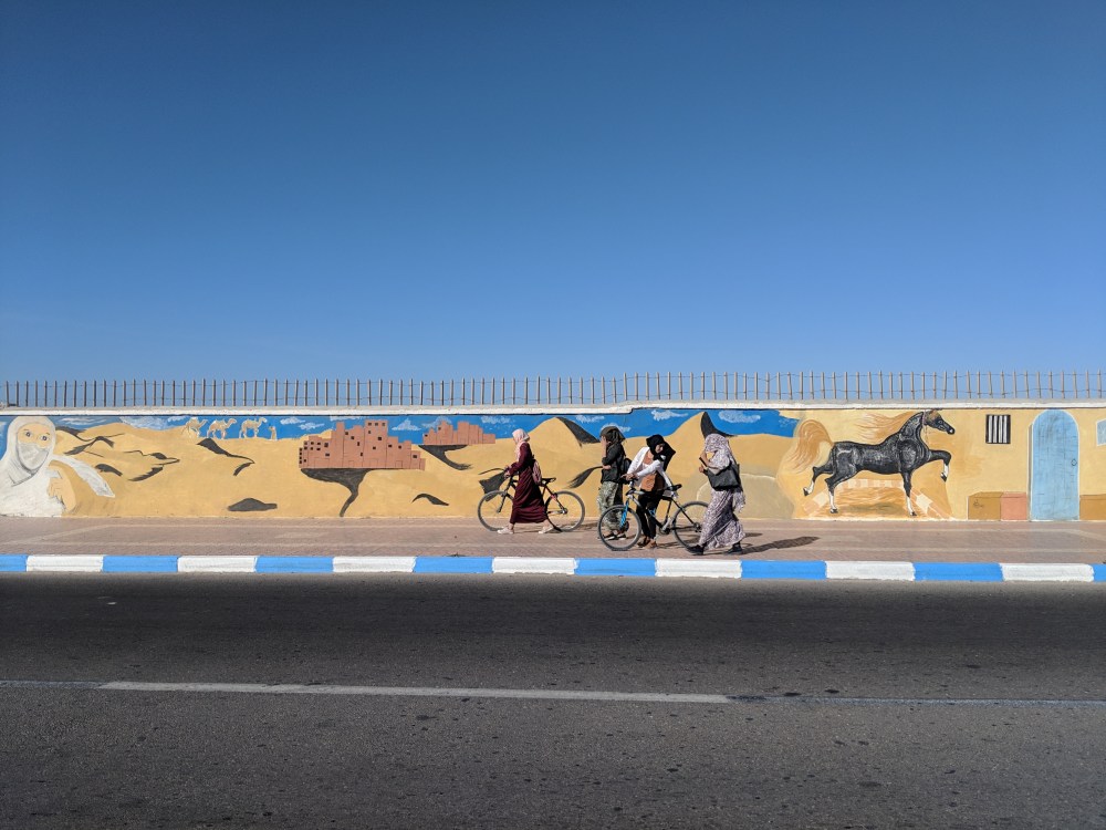ity itself is washed out cube houses all over but without any obvious atractions. It’s warm around but the wind is strong and chilly. There are more people with turbans, also many more black people. A hotel I stay in, Hotel Sahara, is busy. I had a perfectly grilled octopus for dinner (70Dh) in Restaurant Bahia. I still have a bottle of wine from Ceuta which I probably have to consume before I enter Mauritania.
