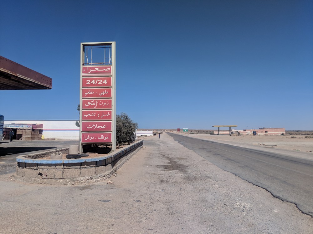 During the 2nd pit stop one man started talking to me. His name was Othman, or at least that’s how he pronounced it. We started discussing religion, names and where they come from (I claim mine has no meaning but if it does, it probably comes from Bible), which religion allows divorce and whether temporary marriages in Sunni Islam are made for specific time or not. I was getting confused on how much I can talk. Othman said he was from Sahara and when he asked me “Is this your first time here?” I didn’t know if he meant Morocco or Sahara. He meant Sahara. In Laayoune I was also confused about the language to use: the first taxi driver was responding to my French in Spanish. Here in Dakhla a waiter greeted me in Spanish. Am I disrespectful if I use or don’t use Spanish? How do I go about talking about Western Sahara with Moroccans? On the bus there was also a Moroccan couple, with whom I had a chat. They were going on holidays to Dakhla and they fed me oranges.