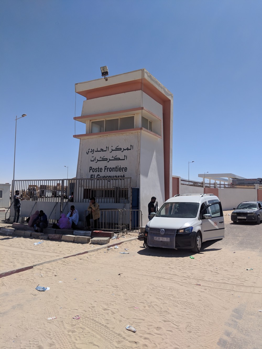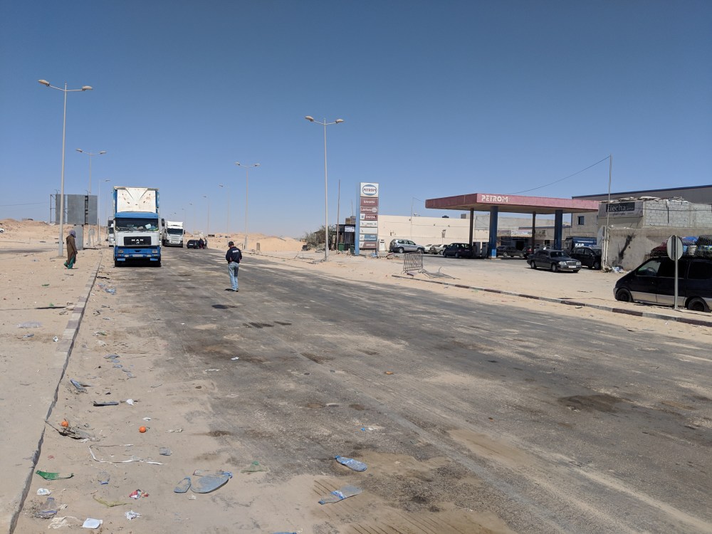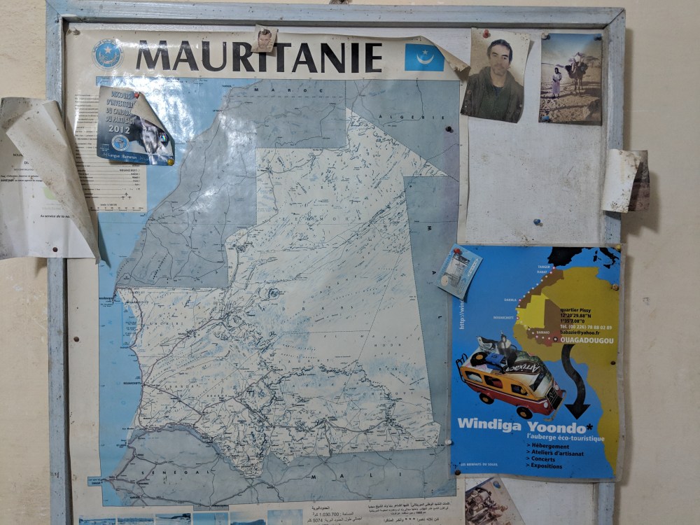 It’s entry to Mauritania that took long. There were quite many foreigners in their overland trucks and a group of Italian bike drivers. Now what exactly is happening with all those white people after they cross the border I have no idea, I’m not seeing them in town at all. But there we were. It takes 2 rooms to get a visa, they take your fingerprints and a photo, then it’s on to another room where you get the visa stamped and some questions are asked, as to where I’m going. Not all of Mauritania is safe, and it’s a pity.