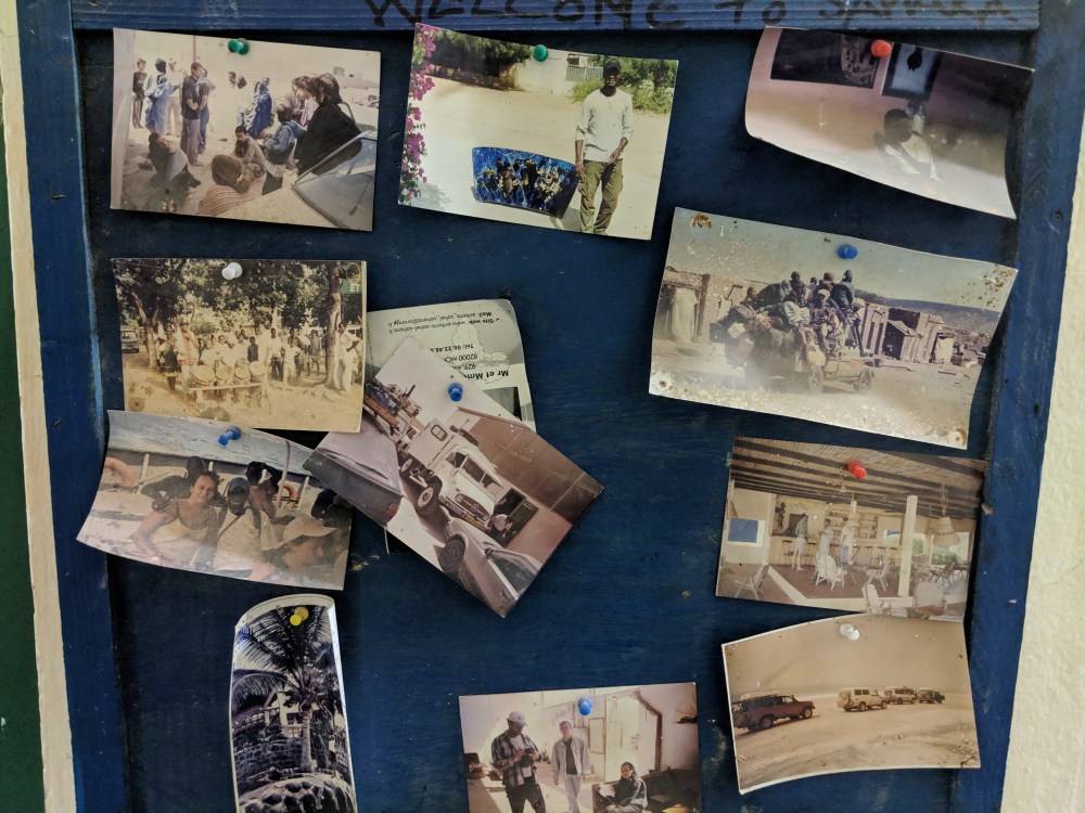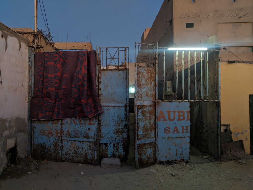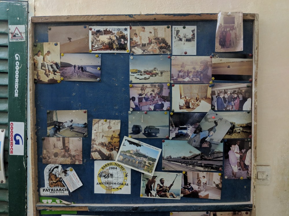 It feels very dusty and forgotten, Auberge Sahara. It’s full of overland journey stickers from 2008 and pale photos from around that time. It must have been popular. Now it’s just a shadow of what Sahara Overland used to be.