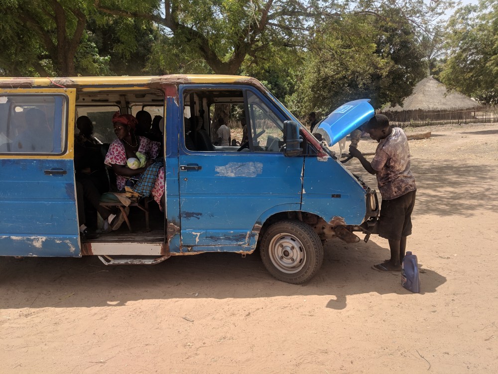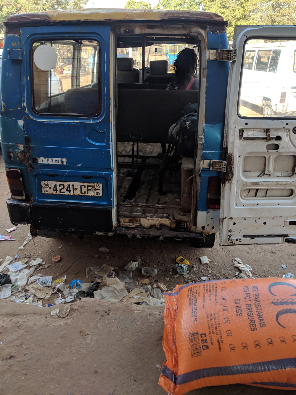 I paid 1250CFA for the ticket and threw my rucksack in. I was kinda hoping that that’s it re baggage fees but ha! Nope. The boys asked 1000CFA more, I said 500CFA and they agreed.