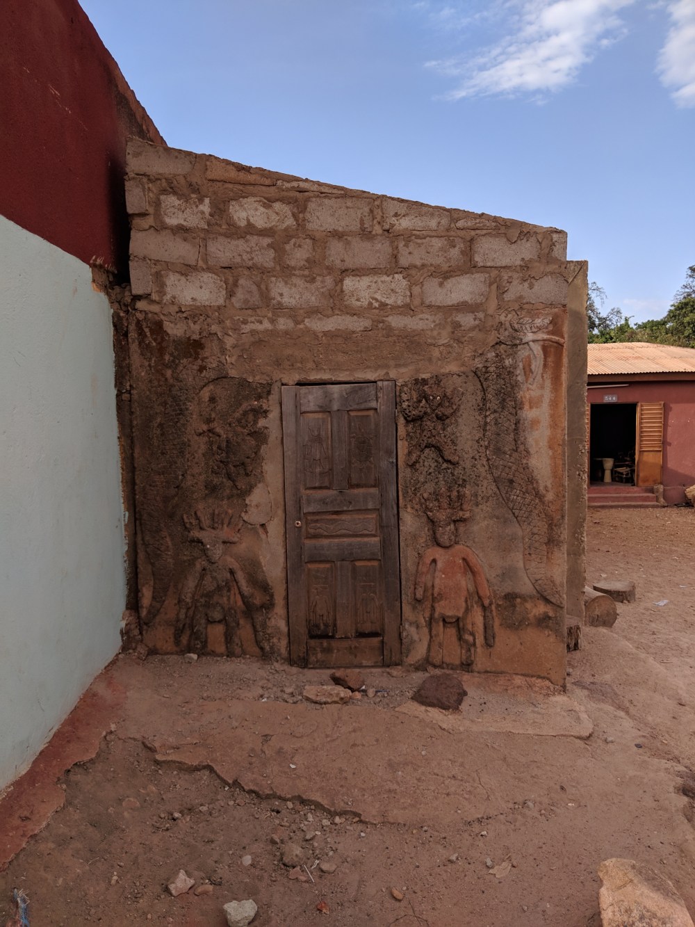 There is a fetish protecting the neighbourhood on that street but it’s in an enclosure and no we couldn’t see it but if I came on Monday we could slaughter a chicken for the fetish.