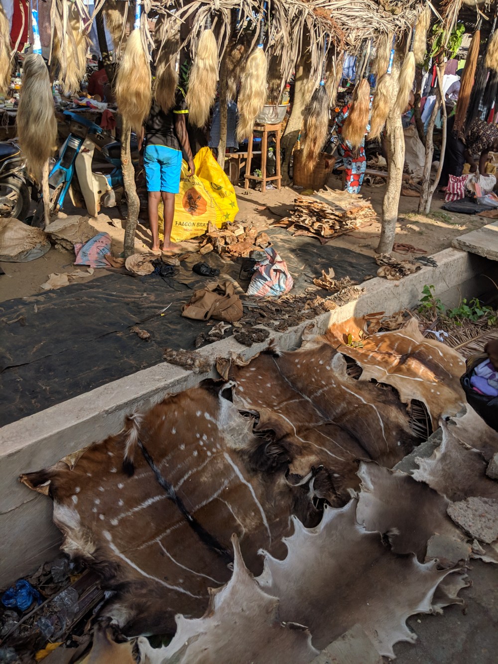 It was very interesting especially the food part. Clothes, second hand of course, look like they are piles of trash, they lie in such a mess. Food is on the other hand somehow presentable. I was snapping secret photos and I think some men realised what I was doing and I heard some comments but I didn’t pay attention. There were more féticheurs in the market and I managed to snap a bit, though one of them was equipped with a anti-photo fétiche and asked me not to take pics. I noticed some women had very funny haircuts.