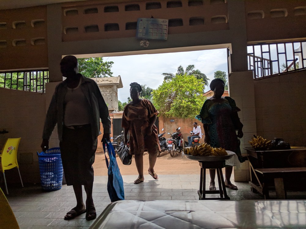 In Porto Novo I chose to stay in Auberge Le Bonheur, which could be translated as Auberge Happiness. I picked it on iOverlander as the cheap one, a bit away from the centre. The name quite indicative of what can be expected, I was presented the rooms: 2000cfa for room with AC, 1500cfa for room with a fan. What?! These were prices for an hour… I asked for the night, 8000cfa, we agreed on 7000cfa. The auberge was popular with couples, one was just leaving, no issues, bonsoir madame bonsoir monsieur. There was a writing pad recording entry and departure time in the reception, I counted 15 entries, the price was 1000cfa anyway, some didn’t spend more than 15 minutes inside.
