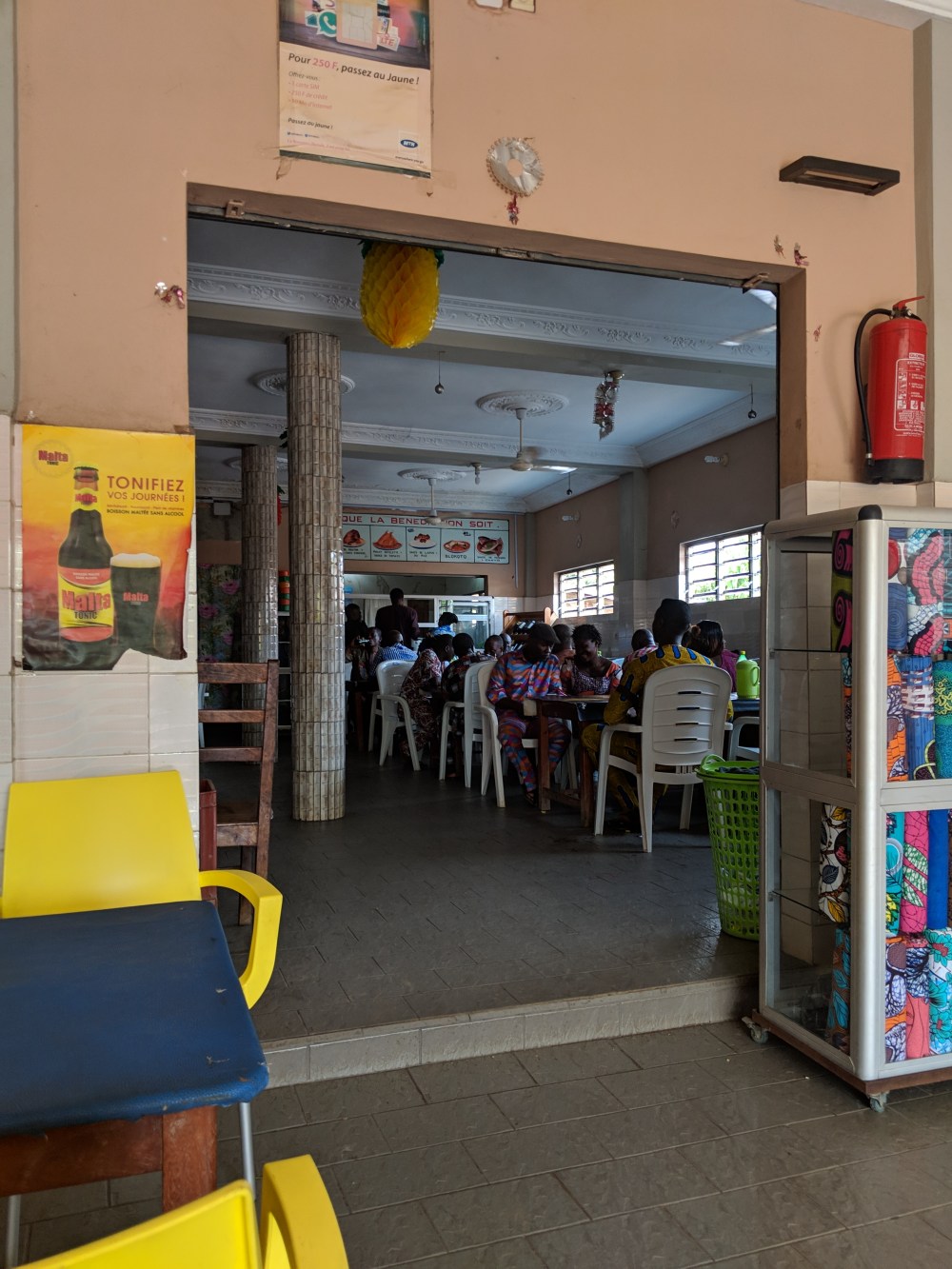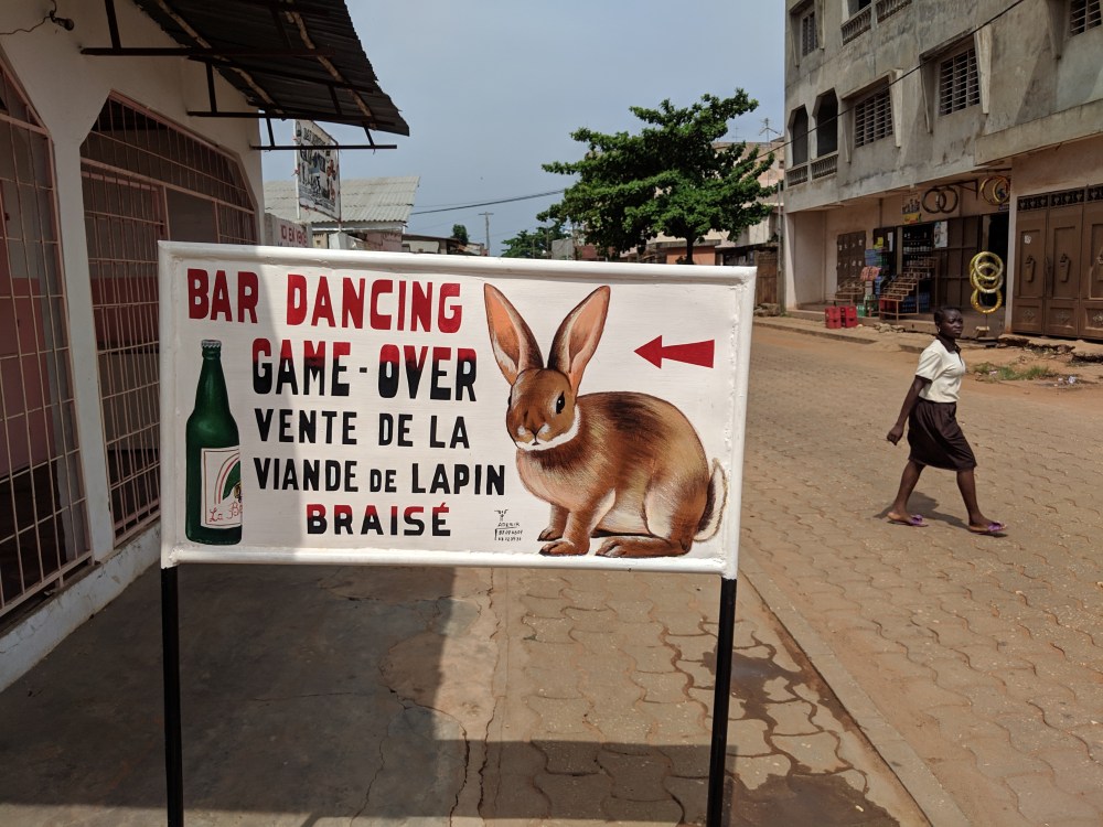 I took a walk towards centre and stopped in a maquis very near, I was hungry. Inside it was full of people, there was just one type of food: pounded yam and groundnut sauce and mutton. I waited maybe an hour to be served. After I asked the waitress why it’s so long, her answer was “you didn’t give me any money!”. I paid 1500cfa and the food was divine. I mean the sauce tastes so fresh, almost Asian. Creamy and zesty. The meat has a lot of stuff in it including parts that had structure of tofu.