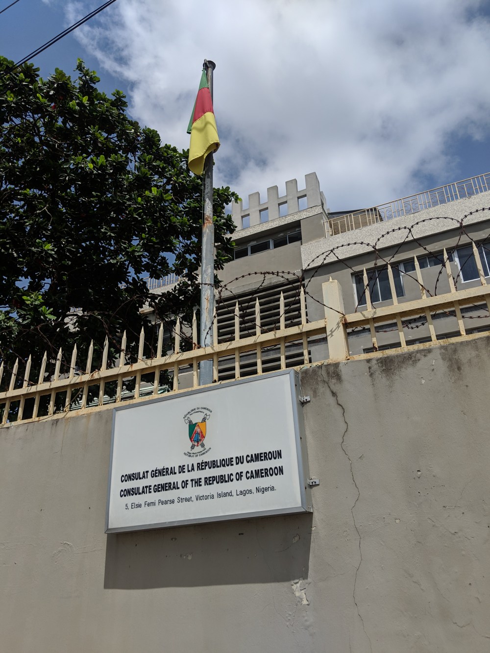I walked on to the Cameroon Consulate. Inside a man sits at a sort of reception. The building is big but rather dilapidated.