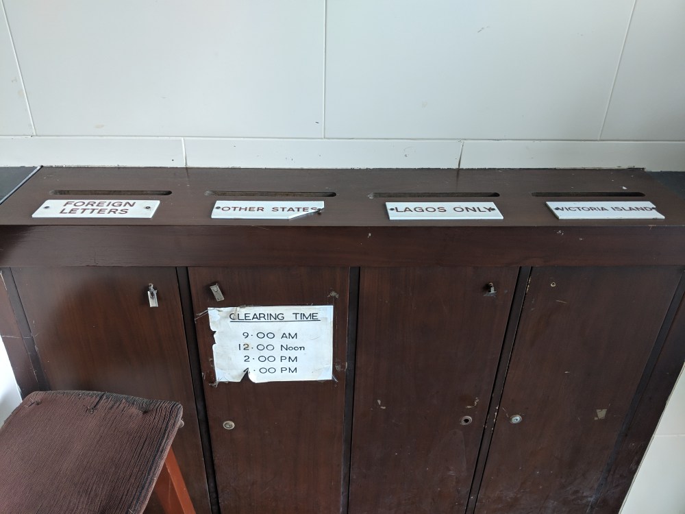 I walked towards Victoria Island Post Office. I had no postcards from Nigeria but I have two unused sets of postcards from previous countries so I could send them from Lagos. The stamps were expensive though, at N550 and the stamps needed glue to even stick to the surface.