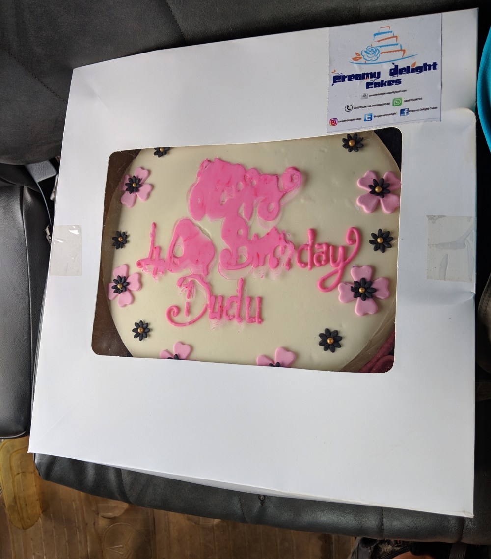 The whole time I was scared I would destroy the cake. Or the car will brake so hard that the cake will fall off the seat. The cake was next to me, one passenger in front by the driver, another on the extra seat, the foldable one by the sliding door. The cake was important.