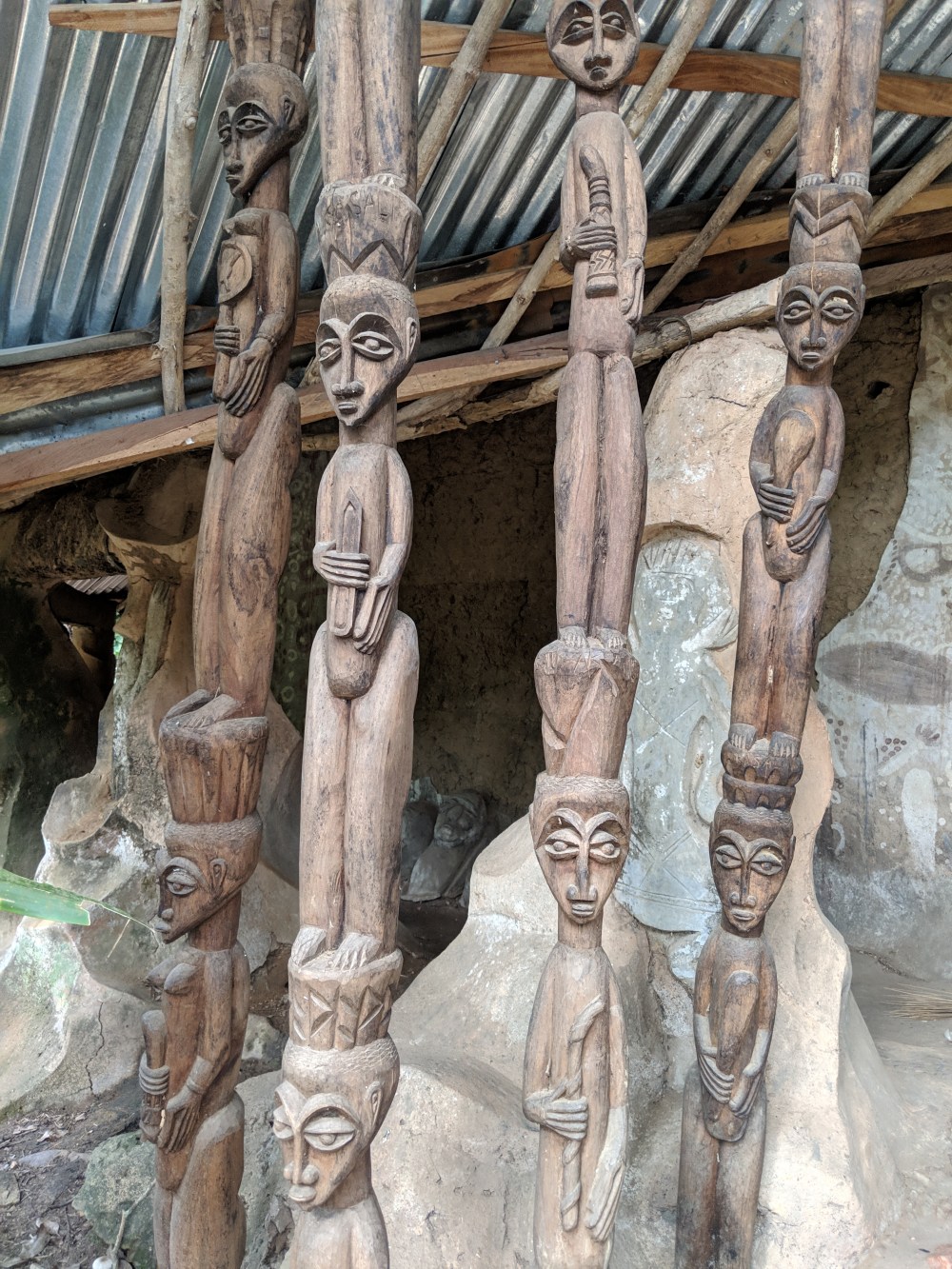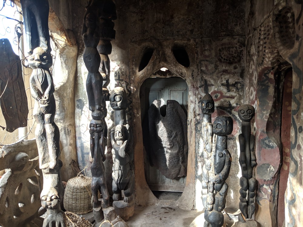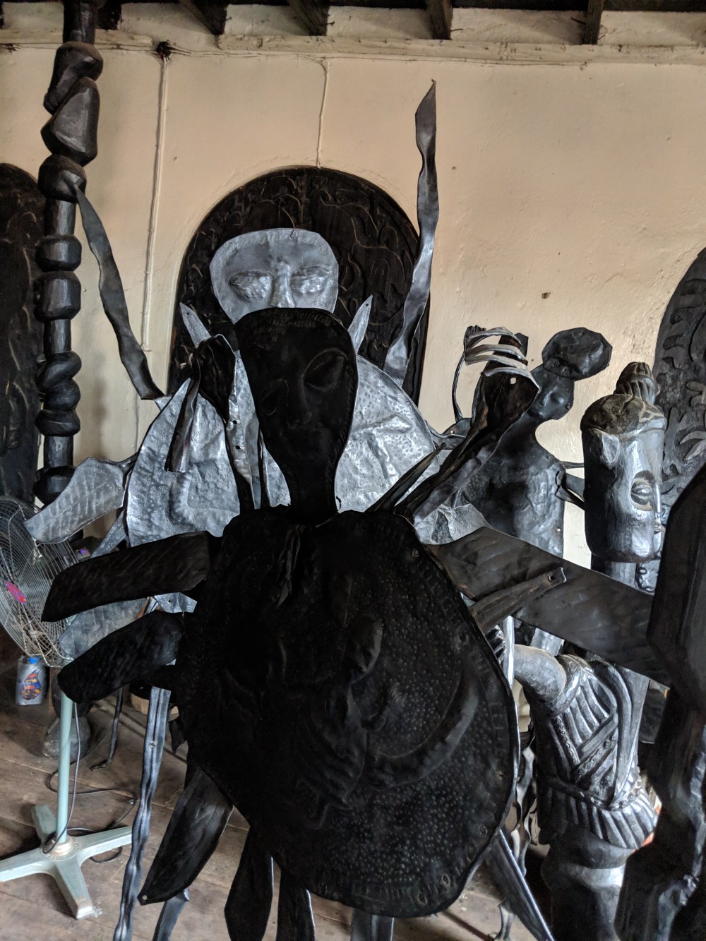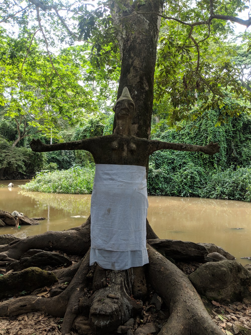 There are very few statues in the forest but the place is quite atmospheric. Those that look like they could be made by Susanna are quite weather-beaten. Of course now without a guide I have no idea what the statues represent. I approach a clearing by the river where what seems like a temple, later I was told it was Osun temple, Osun being the god of water.