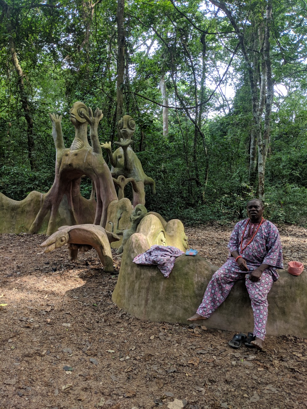 Most of the sculptures in Oshogbo ar work of Susanna Wagner who came from Austria and is credited with reviving ancient Yoruba deities and gods. She was also an artist and her works are on display in the sacred forest.