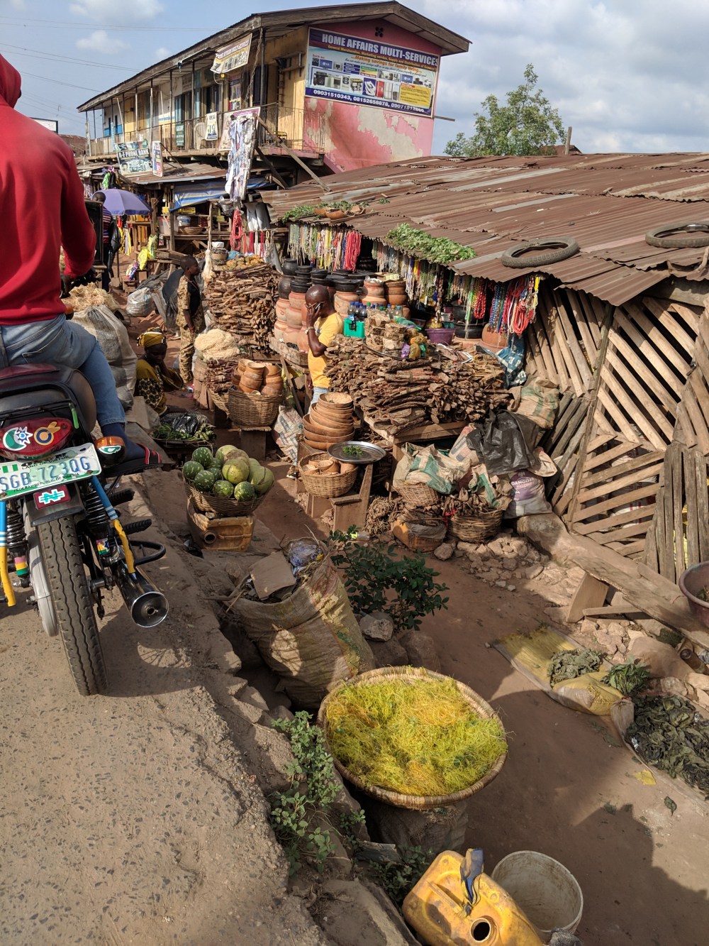 Outside the forest there is a sign towards “palace” so I walk that direction. A man who showed me to the forest, the okada man, calls me and reminds me he showed me how to get to the forest and I should give him something.