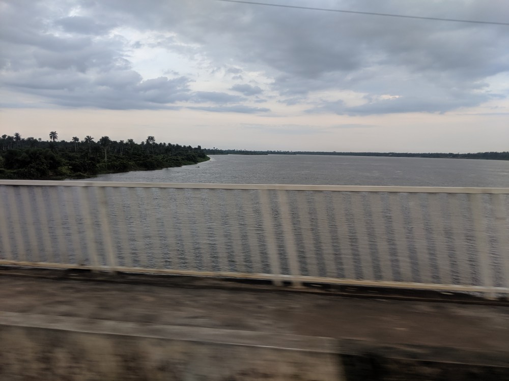 It was a slow ride. Busy road. Heavy lorries abound. Many checkpoints. The border between Akwa Ibom and Cross Rivers is on a bridge. There is a checkpoint on each side where traffic is only allowed one-way.