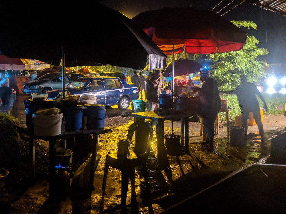 15-20 minutes later the rain wasn’t getting any weaker, it was almost 8pm, I had no hotel. I asked a woman standing next to me about taxis, she pointed out to cars passing by but also said the cars standing on the side of the road could take me. Every car in Calabar could be a taxi.