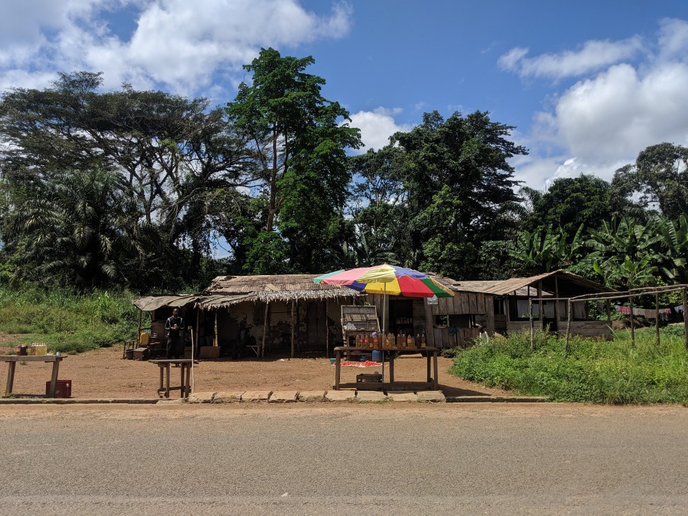 After the two passengers from the front left, I sat in front. The driver started asking me where I was going, I mentioned Gabon, he told me he could drop me at the border. I said no thank you.In Ambam we stopped at a bus agency and the driver said he could drop me by the border for 5,000cfa. I said no but then other passengers joined telling me that it’s better to go with him and that finding transport would be difficult to the border. There was also a man from the bus agency who talked to us and he kept quiet during the time everyone talked. Next time I will know this is a sign I am being fed bullshit. Because I fell for that talk and I took the car to the border, the Mali man and another woman were inside the car with me, supposedly dropping “in town” but they went all the way to the border town with me and I eventually realised they paid 700cfa each, so that’s the price I should have paid myself. In Kye Ossi of course I saw plenty busses and cars and bus agencies. One can even go all the way to Douala.There are two border crossings with Gabon near town of Ambam, one is in the village of Woleu-Ntem, another in village of Kye-Ossi, the Kye-Ossi being a point where Cameroon, Gabon and Equatorial Guinea meet. The guidebook really only mentions Woleu-Ntem border crossing , the maps kinda point to it as a major road crossing. So I thought I’d go there. But the driver insisted we should go for Kye Ossi, that it’s easier to find transport on the other side of the border, the Mali man supported him (though this man had an interest in it as he was going to Equatorial Guinea) so I too agreed on going via Kye Ossi. Also, reports on iOverlander mention “a man with glasses” on Gabon side being very strict about having a printed hotel reservation for Gabon and even calling the hotel to check if it’s real and some people managed to avoid this hassle by going via Kye Ossi. I did not have any hotel reservation as no hotel in Bitam, the first town in Gabon, exists on any booking platform and also going by public transport doesn’t really allow for proper planning of “I’ll be here on this day and there on that day”.With all that going in our car, I must admit the driver took care of me, he did explain where we were going. He insisted on going to immigration office in Ambam and getting my exit stamp there. But he had no idea where immigration was, so he found a moto, forces its driver to take us there. The building had no sign, the man sitting on the chair outside was in civilian clothes yet he claimed he was immigration, they took my passport and went inside, coming back to me only to ask about my profession. Asking for profession is a mandatory thing of any registration of personal details by any immigration person in West/Central Africa. There is a word in French describing what I’m doing, formateur, in English I just say I’m a teacher.The immigration man and my driver came back outside and the immigration man said he’d registered me but the exit stamp I should get at the border. Fine.I asked the driver to stop so I can get a taste of that Spanish beer, he told me I’d better not buy the Bear Beer he himself was drinking as it was “too strong.” Right. I bought San Miguel.It was about 30mins to Kye Ossi on a good road. The town was bustling, much bigger than I expected although not much more than a busy market along the main road. The crossing to Equatorial Guinea is right in town, the crossing to Gabon a few kilometres away from town. I chatted a bit to the driver and asked him if he was a soldier or a policeman, he told me to drop the subject. Though he did navigate the checkpoints using his uniform as a bargaining point.But the first checkpoint, just at the beginning, after Ebolowa, where my passport was taken and I went inside to meet the few checkpoint people, including two women, was a sign of things to come. The women and men there insisted that the person who stamped my passport on entry, in that tiny village outside Banyo, had no right to stamp it as he was some ordinary policeman. So now, it was not really my fault that I didn’t have the right entry stamp, they had to register me. And I had to pay for that registration. 3,000cfa. Of course I did refuse to pay and it even took them by surprise that I did and they eventually did let me go, without any “registration.” It made me also wonder if my entry stamp was a right stamp as, true, it didn’t look like the regular border stamps.In Kye Ossi we stopped at the immigration office, the driver keen to lead me but the man sitting outside ignored him and spoke only to me. It took 5 minutes for the officer named Johnson to stamp my passport, he was an English-speaking man, no registration, no problem with my entry stamp. Is as free to go.The driver did ask if I wanted to buy something before we reach the border, no thank you. The Mali man left the car, we drove the maybe 2-3kms to the border. There we negotiated another checkpoint without any questions asked, I got dropped by the border, the driver asked another 10 times if I’m okay. I was okay and he left.One registration in the first booth. 50 metres later another booth, I got registered in two other books. No problems, au revoir Cameroun.The Gabon immigration is across the river, several hundred meters away. The river is quite pretty, surrounded by thick vegetation. The immigration officer welcomed by, bienvenue chez nous. He asked for a passport, looked at the visa, “ah, it’s from the embassy”. As if it could be from somewhere else? And he did ask for hotel reservation. And I said I didn’t have any. And why? Because there are no hotels in Bitam that I can book online. And where will I stay in Bitam? Hotel des voyageurs. Ah yes, there is a hotel like that. And where else will I be in Gabon? Lambaréné, Ndende and on to Gabon. So perhaps I had reservation for Lambaréné. No I didn’t. I use public transport and with public transport I have no i