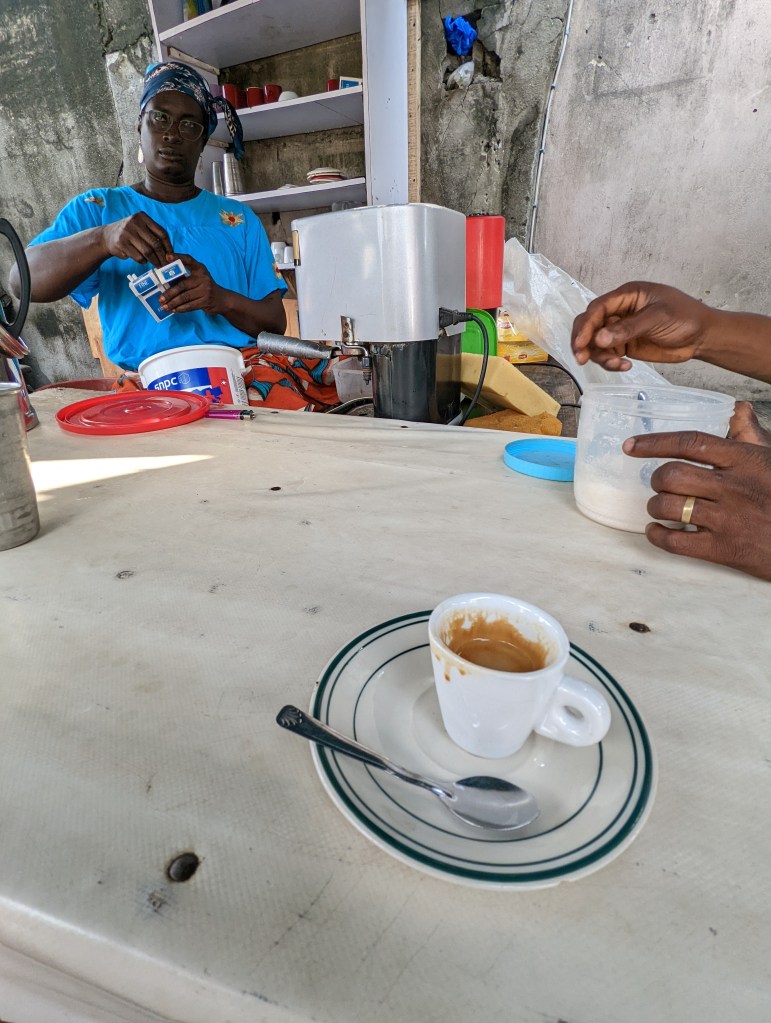 So next day – first things first – coffee. And a pleasant surprise, the same Madame who was serving coffee almost next door from the hotel is still there, accompanied by possibly her daughter. The coffee – strong robusta – is still 100fcfa. I mean, the bliss continues. Of course I had more than 2 espress.
